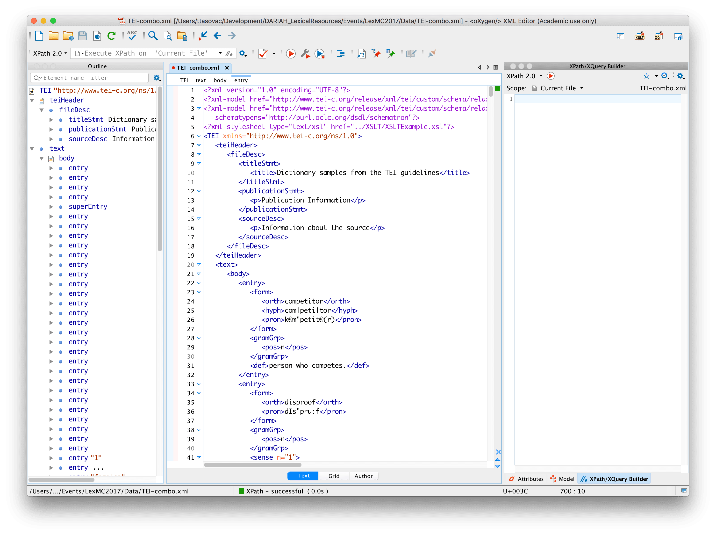 - copy the contents of the dictionary samples from here into the oXygen file you just created