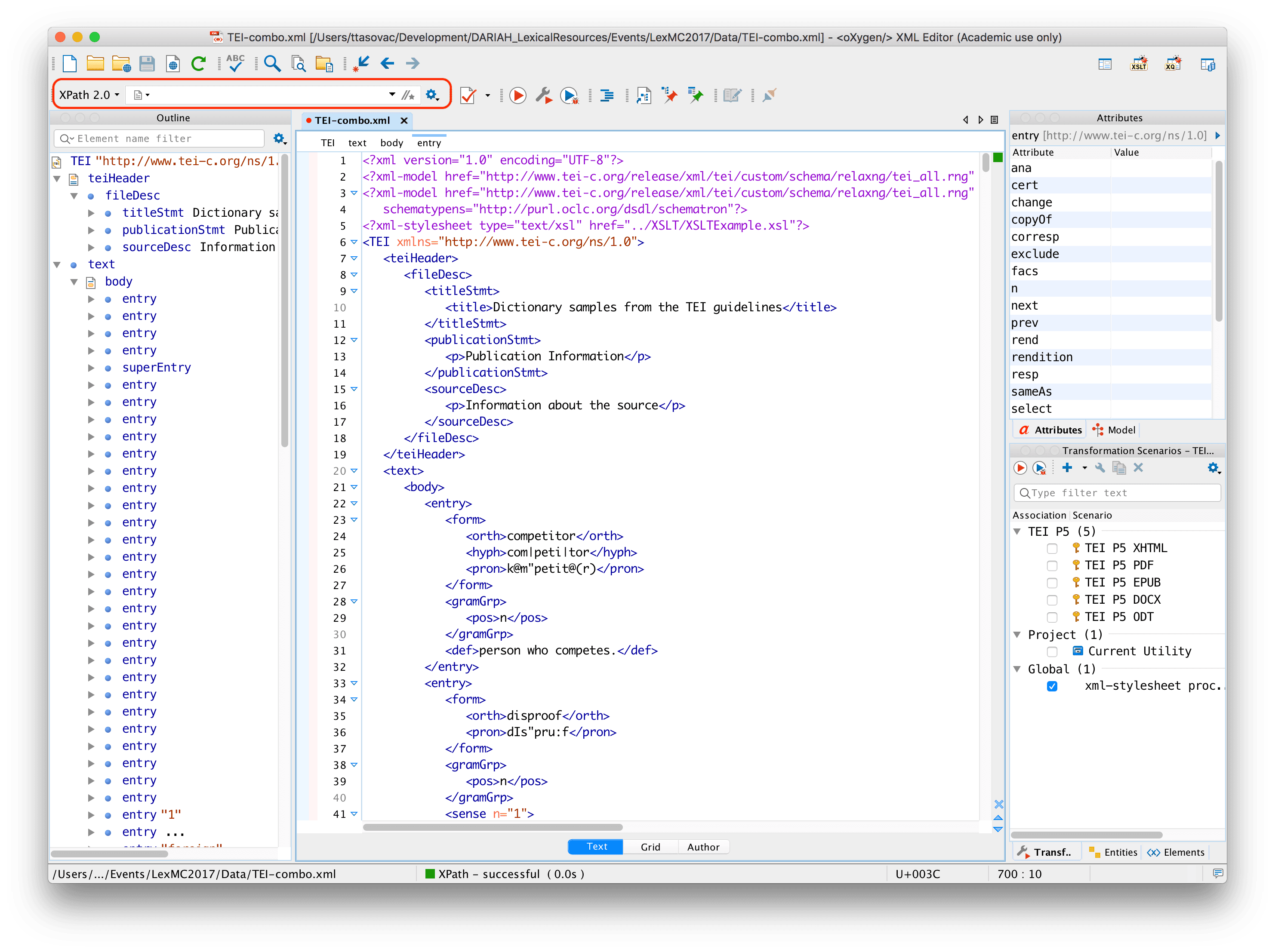 Open the dictionaries file you’ve just created in oXygen and look for the XPath input field in the upper left corner of the window.